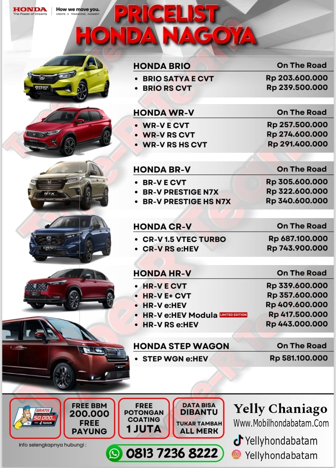 Perkenalkan saya Yelly Herawati, SALES SUPERVISOR Honda Nagoya - Pelita. Website ini adalah Website pribadi yang saya buat untuk memberikan informasi dan Promo ter-Update tentang Mobil Honda. Wilayah yang kami Cover untuk wilayah BATAM dan Sekitarnya.